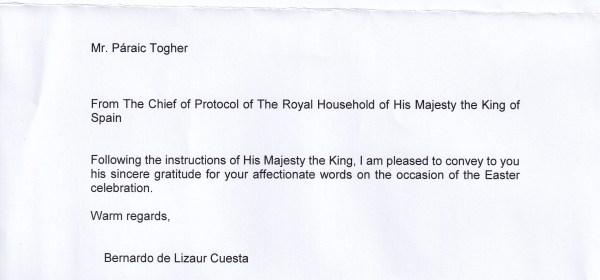 Royal response from Their Majesties The King and Queen of Spain on the occasion of Easter 2025. The reply is in the form of a