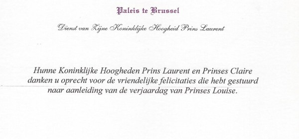 Royal response from Their Royal Highnesses Prince Laurent and Princess Claire of Belgium on the occasion of their daughter Her Royal Highness Princess Louise of