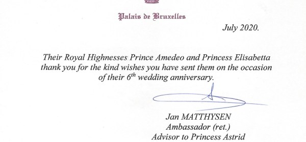 Royal response from Their Imperial and Royal Highnesses Prince AMedeo and Princess Elisabetta of Belgium, Archduke and Archduchess of Austria-Este on the occasion of their