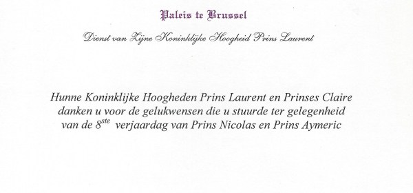 Royal response from Their Royal Highnesses Prince Laurent and Princess Claire on the occasion of their twins sons Their Royal Highnesses Prince Nicolas and Prince