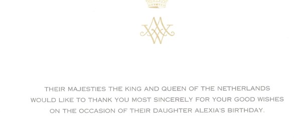 Royal response from Their Majesties The King and Queen of the Netherlands on the occasion of their daughter Her Royal Highness Princess Alexia of the
