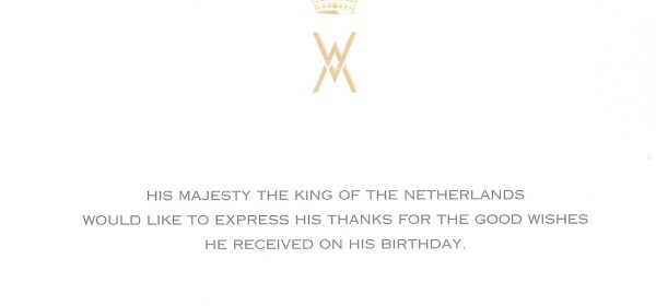 Royal response from The King of The Netherlands on the occasion of his 52nd birthday. His Majesty is the son of then Their Royal Highnesses