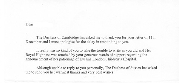 Royal response from Her Royal highness The Duchess of Cambridge in reply to a letter I wrote to congratulate Her Royal Highness on the occasion