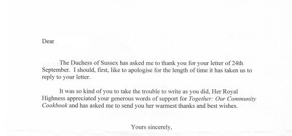 Royal response from Her Royal Highness The Duchess of Sussex in reply to a letter I sent to her congratulating her on the the work