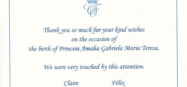 Royal response from Their Royal Highnesses Prince Felix and Princess Claire of Luxembourg on the birth of their daughter Her Royal Highness Princess Amalia de