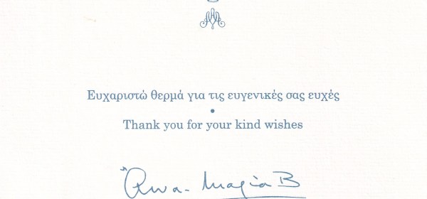 Royal response from Their Majesties The King and Queen on the occasion of Christmas 1964 and The New Year 1965. Born Constantine on 2nd June