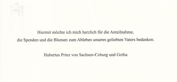 Royal response from His Highness Hubertus, Prince of Saxe-Coburg and Gotha on the passing of his father His Highness Andreas, Prince of Saxe-Coburg and Gotha.