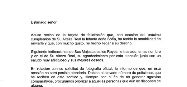 Royal response from Their Majesties The King and Queen of Spain on the occasion of their daughter Her Royal Highness Infanta Sofía of Spain’s 16th