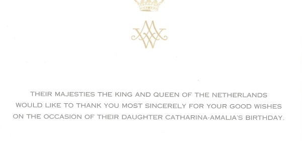 Royal response from Their Majesties The King and Queen of the Netherlands on the occasion of their daughter Her Royal Highness Princess Ariane of the