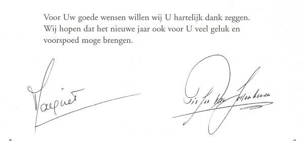 Royal response from Her Royal Highness Princess Margriet of the Netherlands and Peter van Vollenhoven Jr. on the occasion of Christmas 2005 and the New
