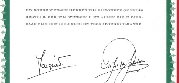 Royal response from Her Royal Highness Princess Margriet of the Netherlands and Peter van Vollenhoven Jr. on the occasion of Christmas 1998 and the New