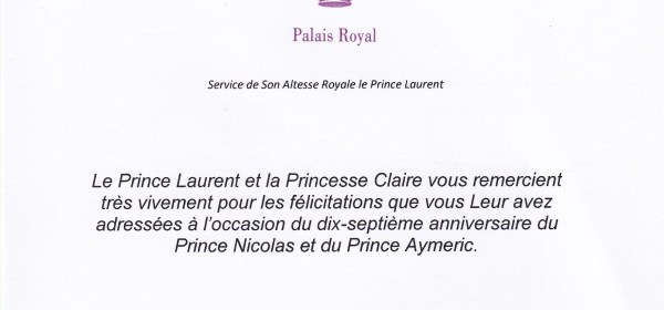 Royal response from Their Royal Highnesses Prince Laurent and Princess Claire on the occasion of their twins sons Their Royal Highnesses Prince Nicolas and Prince