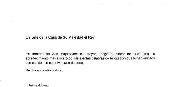 Royal responses from Their Majesties The King and Queen of Spain on the occasion of their 19th wedding anniversary. The couple, then His Royal Highness