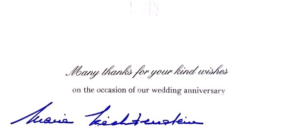 Royal response from Their Serene Highnesses The Prince and Princess of Liechtenstein on the occasion of their 53rd wedding anniversary. The couple married on 30th
